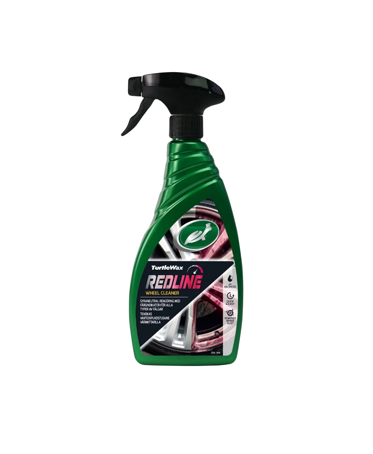 Turtle Wax velgede puhasti Redline Wheel Cleaner 500 ml. Happevaba veljepuhastusvahend eemaldab sissesööbinud mustuse ja lahustab piduritolmu pinda kahjustamata. Peaaegu neutraalne vahend on ohutu kõikidele veljetüüpidele ega kahjusta kleebiseid. Seda võib jätta pinnale ka pikemaks ajaks kui tavalisi happelisi või aluselisi vahendeid. Vahendi värvuse muundumine punaseks annab märku, millal on õige aeg puhastatavat pinda loputama asuda. Nõuanne. Tugeva veejoa või survepesuri abil loputamine vähendab harjamise vajadust. Tugeva määrdumuse korral hõõruge plekke harjaga ning korrake puhastusprotseduuri. Suurte või keeruka ehitusega velgede korral puhastage kõigepealt pool velge, seejärel pöörake velge pool pööret ning puhastage teine pool. Kasutamine.