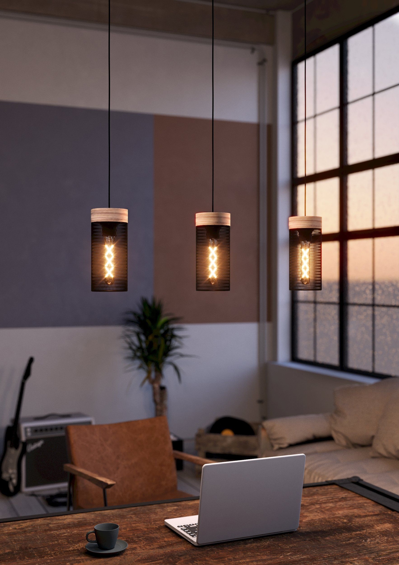 Stiilne KILNSDALE valgusti on mitmekülgne valik kodu või kontori valgustamiseks, ühendades musta tooniga puitelemendid ja kolm E27 sokliga valgusallikat.