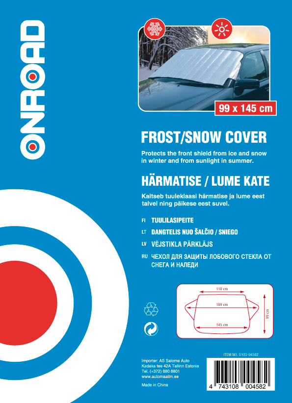 Kaitseb tuuleklaasi härmatise ja lume eest talvel ning päiksese eest suvel. Vähendab jääkraapimisele või lume eelaldamisele kuluvat aega talvel. Fooliumkate peegeldab 100% päikesevalgust kaitstes nii auto armatuurlauda ja salongi päikesevalguse eest ning vähendades auto sisetemperatuuri suvel. Lihtne paigaldada ja eemaldada