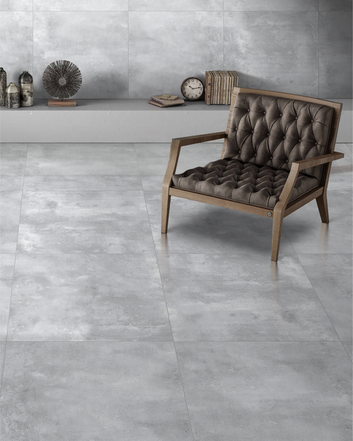 The modern grey shade and natural texture create a stylish and harmonious interior. The tile easily pairs with wood, metal, glass, and concrete, allowing elegant and comfortable spaces.