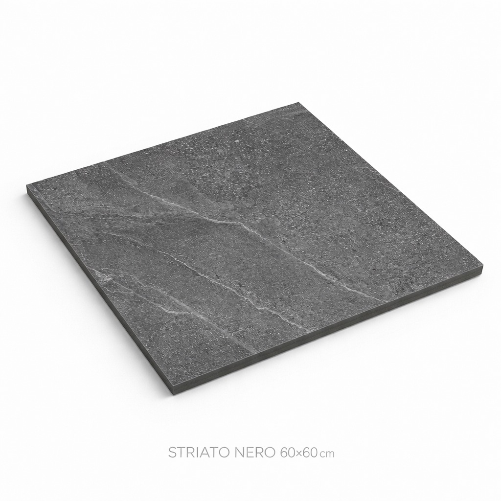 STRIATO NERO porcelain stoneware is made from natural minerals without toxic additives. It is environmentally safe, does not emit harmful substances, and is suitable for residential and public spaces.