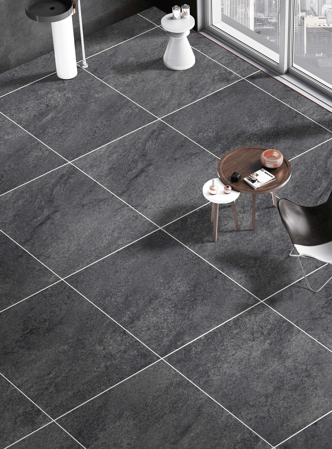 The deep black color and natural texture create a modern and harmonious interior. The tile easily combines with wood, metal, glass, and concrete, allowing you to create stylish and cozy spaces.