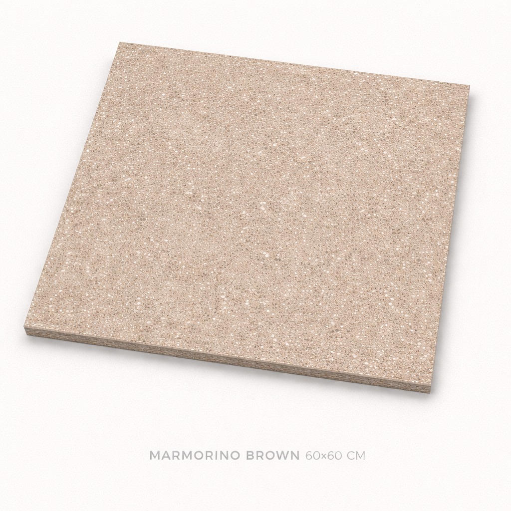 MARMORINO BROWN porcelain stoneware is highly durable, resistant to abrasion and mechanical damage. The matte surface reduces slipping and maintains its aesthetic appearance even under heavy use.