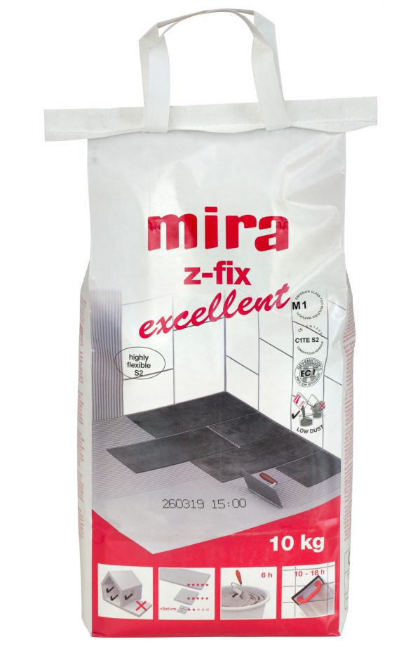 SPECIFICATION TILE ADHESIVE MIRA Z-FIX 10kg price 21.34€ Mira