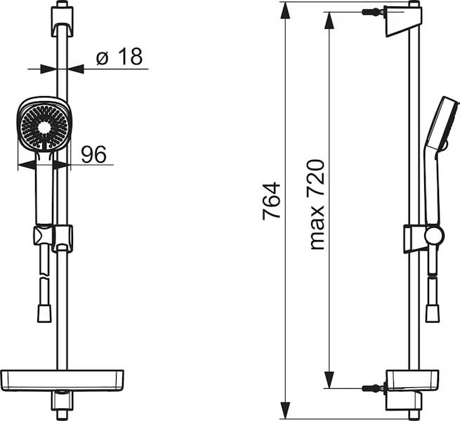 Oras Apollo Style 554 dušikomplekt sisaldab kolmerežiimilist EcoFlow vee vooluhulga kontrolliga käsidušši Ø95mm, maksimaalselt 720mm seatava kinnitusvahega dušilifti, 1750mm dušivoolikut ja seebialust, kroom