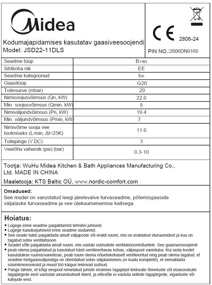 Patenteeritud veejahutusega põlemistehnoloogia vähendab märkimisväärselt NOx heitmeid, saavutades CE 6. klassi kõrgeima sertifikaadi. Midea tehnoloogia põhineb põleti temperatuuri vähendamisel veejahutustorude abil, muutes selle keskkonnasõbralikumaks ja usaldusväärseks valikuks.