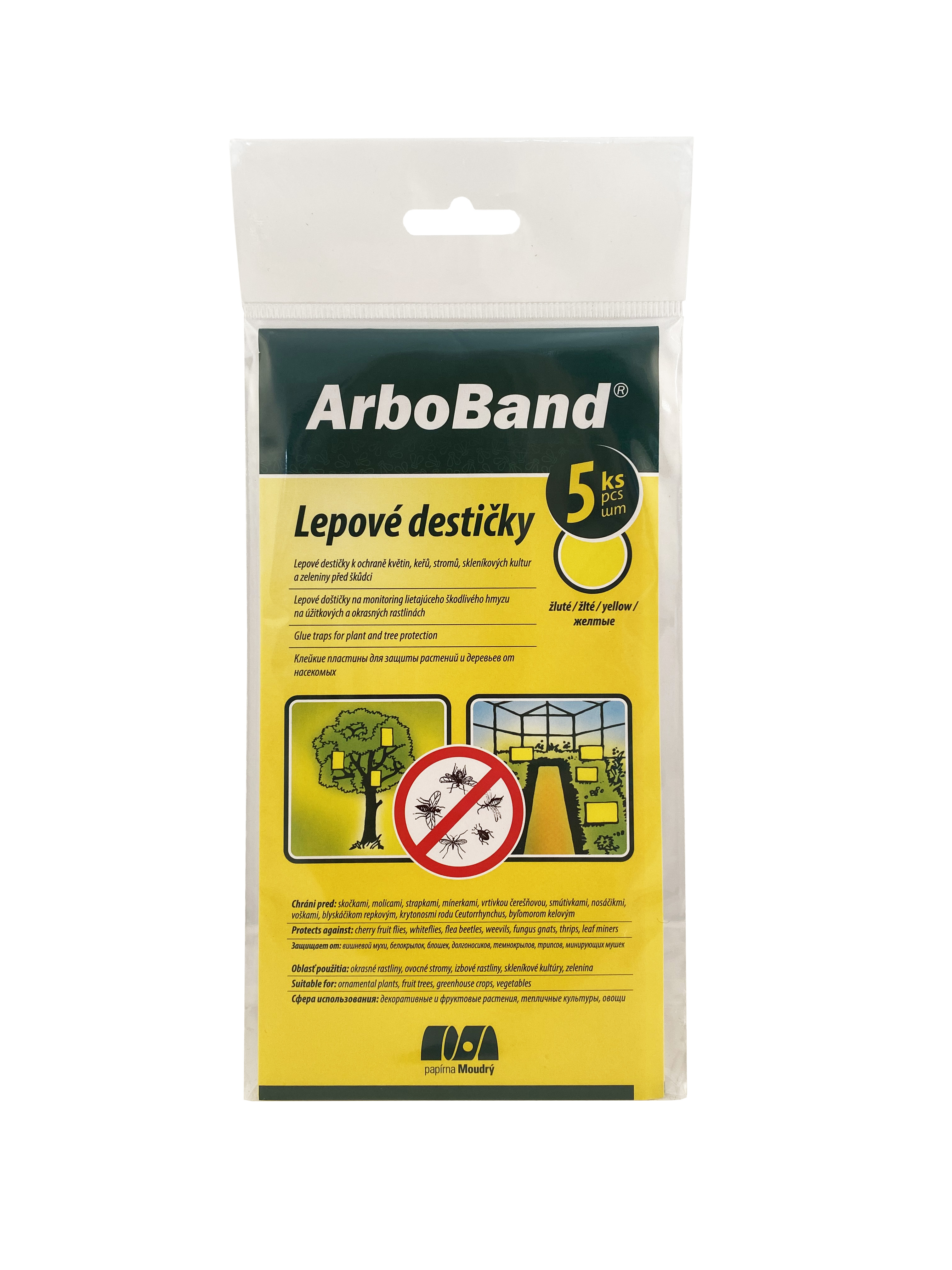 Arboband liimipüünised taimede ja puude kaitseks 5tk/pakis. Värvus: kollane. Kaitseb: Kirsi-kirikärbeste, kasvuhoone kariliste , maakirpude , õiekärsaklaste, seenesääsklaste, ripstiivaliste, kaevandikärbesete eest. Sobib: ilutaimedele, viljapuudele, kasvuhoonekultuuridele, köögiviljadele. Kasutamisjuhend: eraldage kleepuvad liimpüünised üksteisest ja riputage need konksu või nööriga taimedele või taimede lähedale.