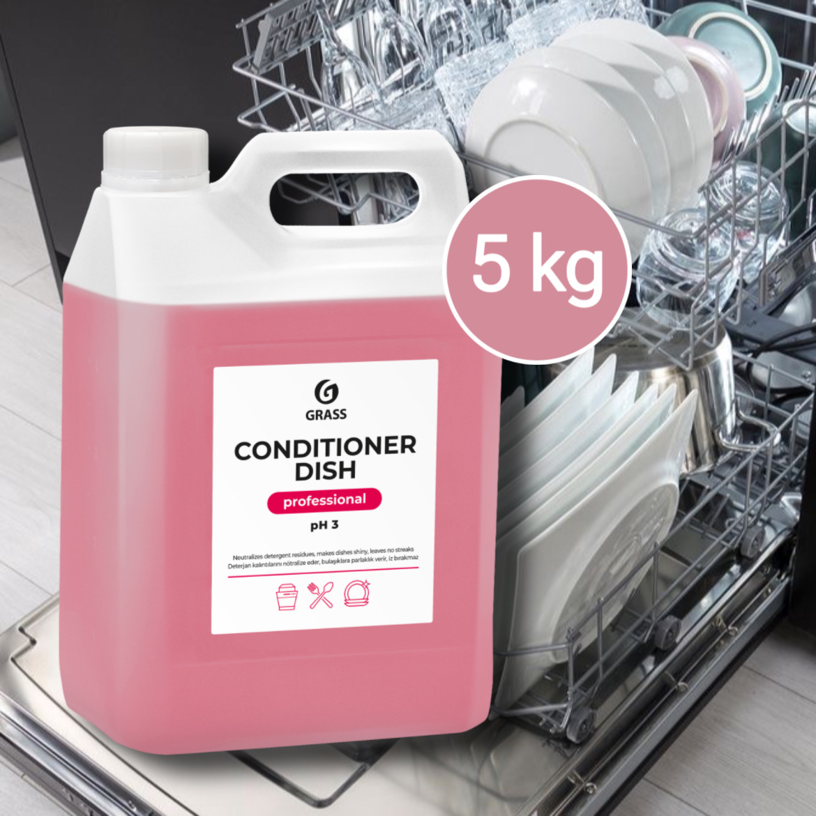 Grass Conditioner Dish Rinse Aid 5 kg is designed for professional use in automatic dishwashing machines. This high-quality product effectively removes detergent residues and provides shine to dishes, ensuring perfect results. Its special formula helps protect glass and other surfaces, preventing streaks and discoloration.