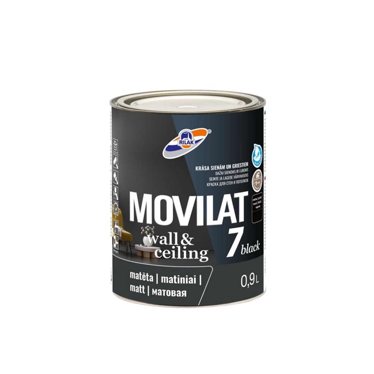 Movilat 7 Black – Must matt seinavärv.Kiiresti kuivav, kergesti pealekantav vesipõhine värv.Sobib seinte ja lagede värvimiseks sisetöödel. Tugev ja vastupidav värvkate.