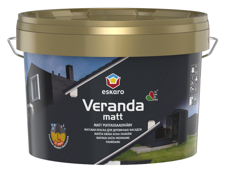 Veranda Matt - baasvärv TR erksatele ja tumedatele värvitoonidele. Vesialuseline akrülaatvärv puitpindade värvimiseks välistöödel. Moodustab puitpinnale mati, vastupidava, elastse kattekihi. Värvitud pind on vett- ja mustusthülgav ja talub hästi ilmastikutingimusi ja säilitab pikaajaliselt – 12 aastat - kaitsvad ja dekoratviised omadused, kui järgida soovitusi pinna ettevalmistuse, värvimis- ja kasutusnõuete osas.