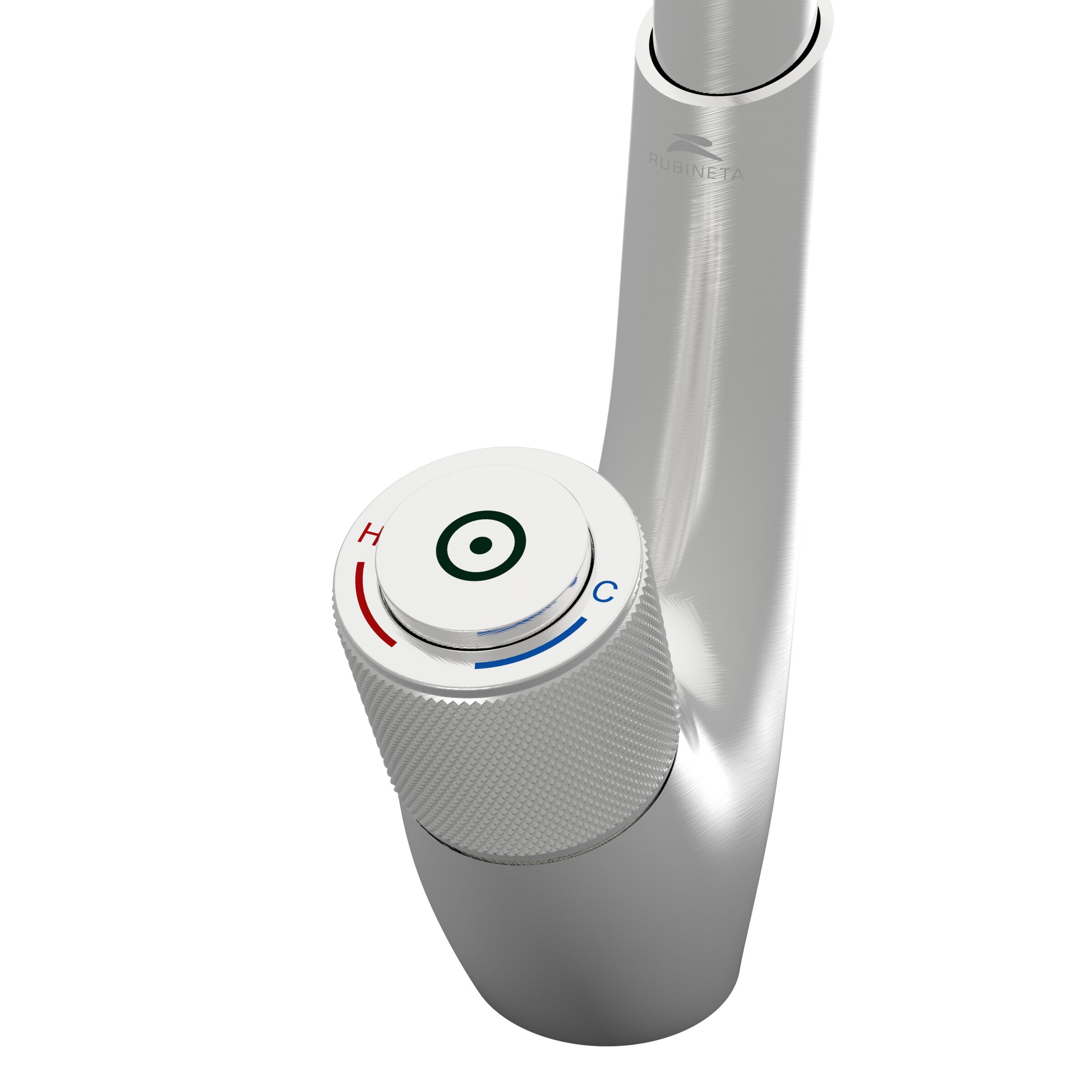 Köögisegisti neile, kes otsivad uusimaid tehnoloogiaid – vesi hakkab jooksma vaid nupuvajutusega ning temperatuur ja veevool on reguleeritavad käepideme ja aeraatori abil! SWAN segistitel on äärmiselt atraktiivne ja elegantne disain.