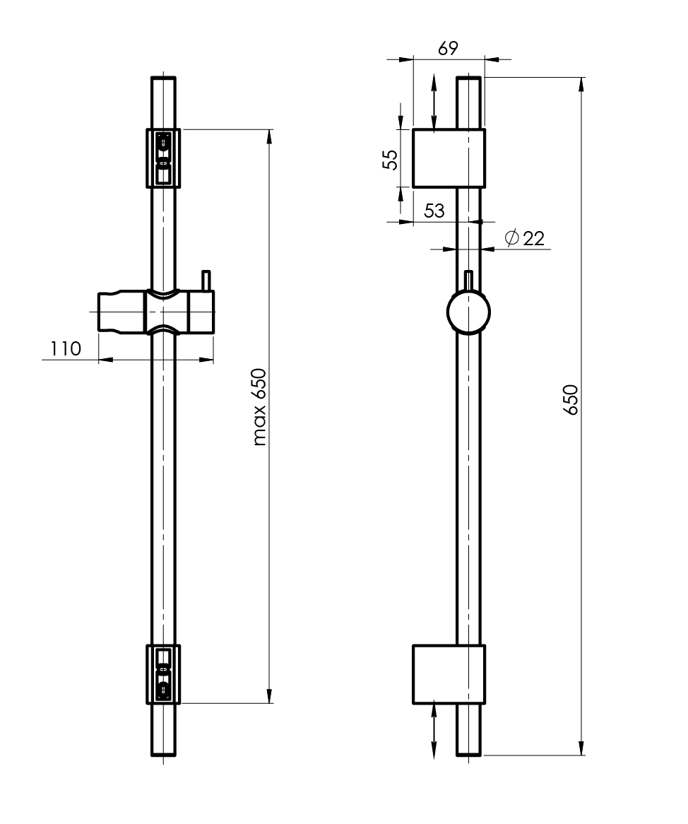 DUŠILIFT RUBINETA COMO(BK)64CM D.22MM MUST
