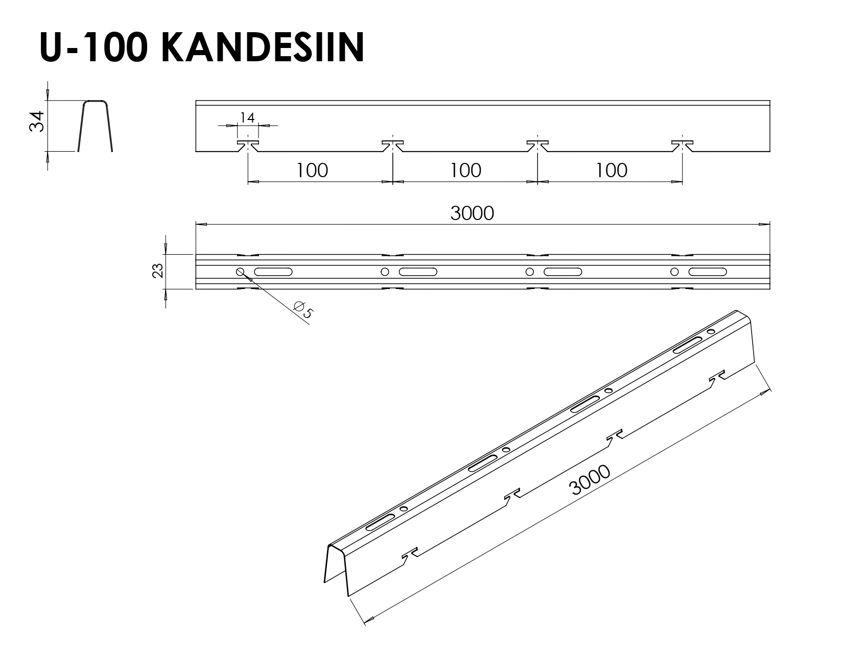 RIPPLAE KANDESIIN U 100/10MM PIKKUS 3M