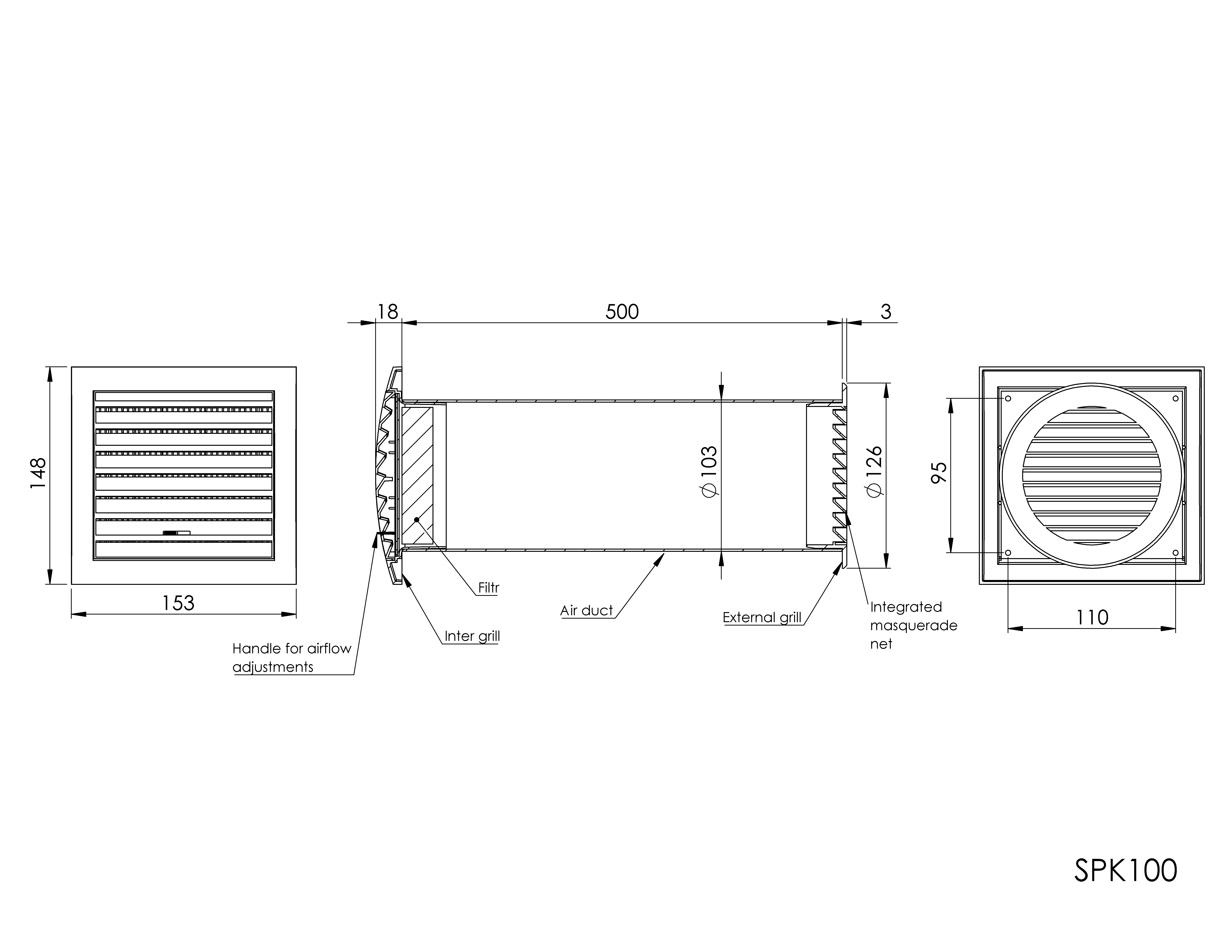 VENT.PLAST.LÄBISEINA KOMPL.100