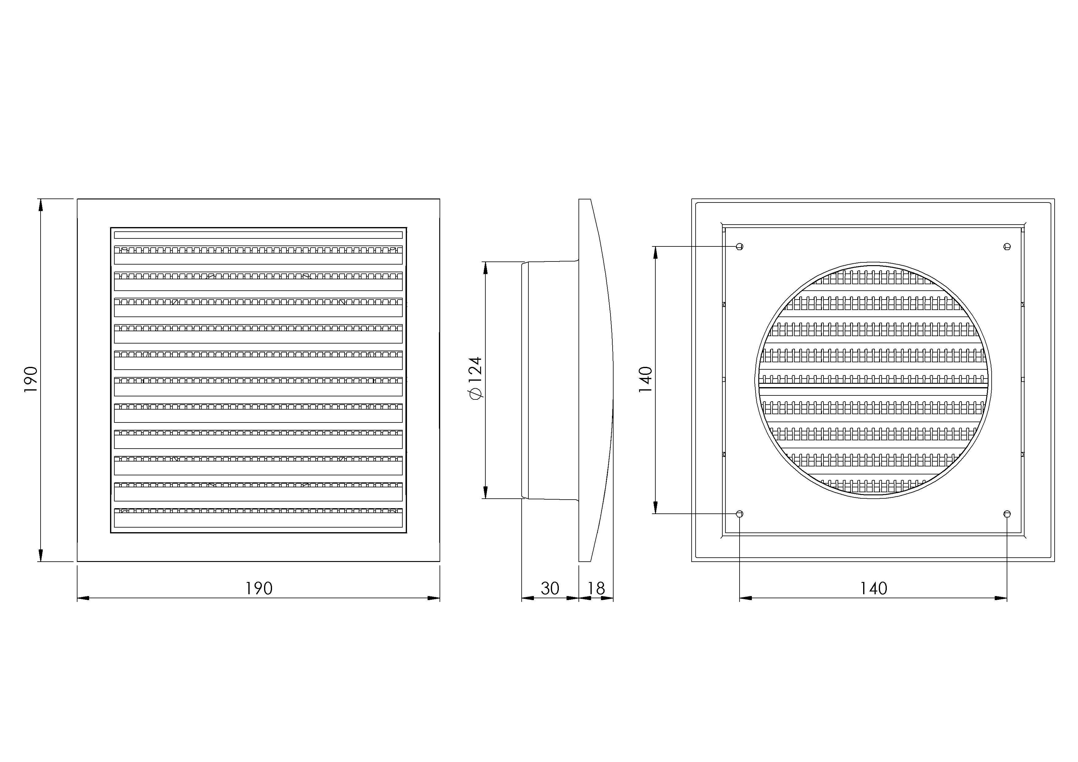 DESCRIPTION GRILLE VENTILATION 190X190/D125 ND12 price 5.57€ Europlast