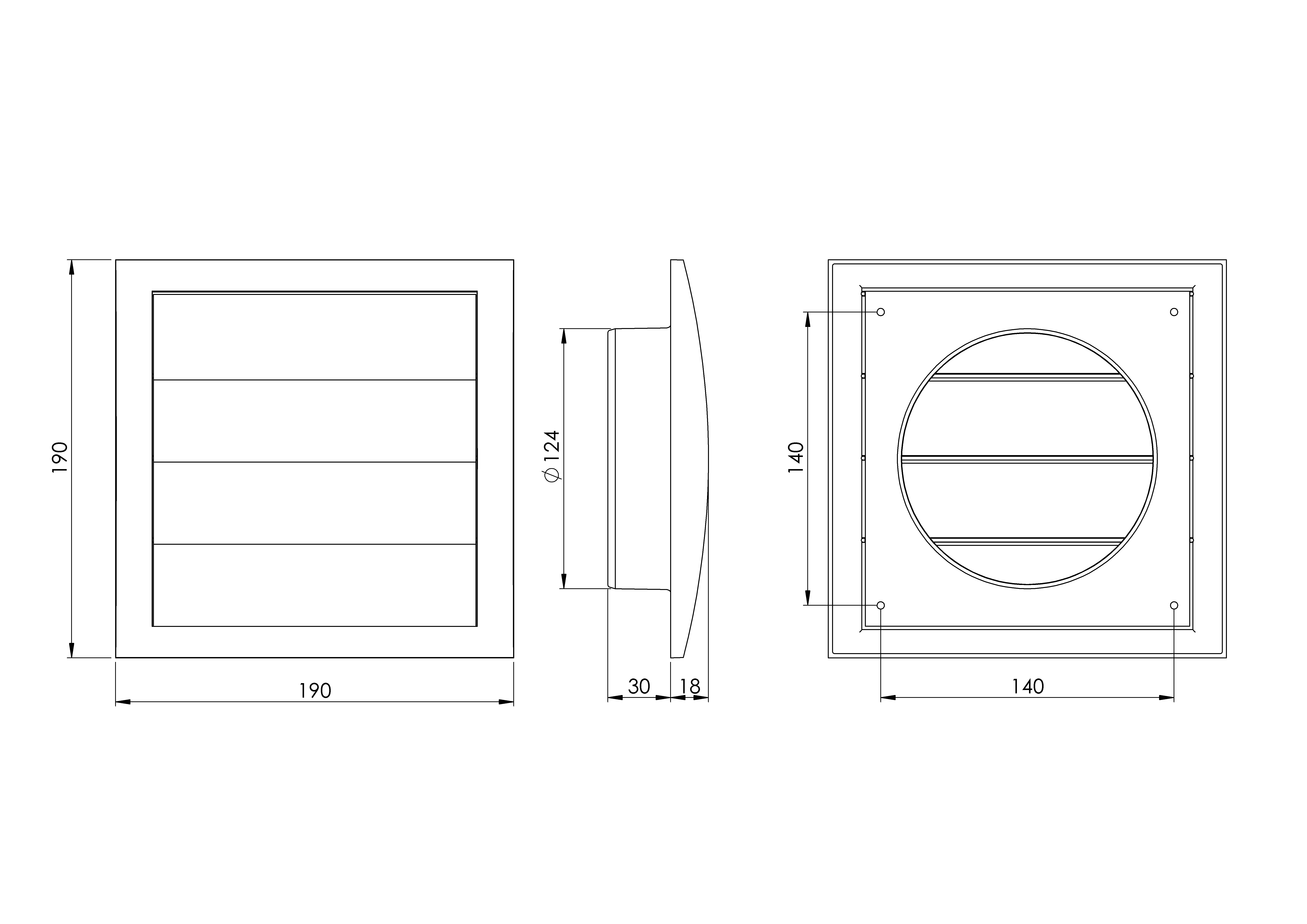 GRILLE VENTILATION ND12ZB 190X190/125 P
