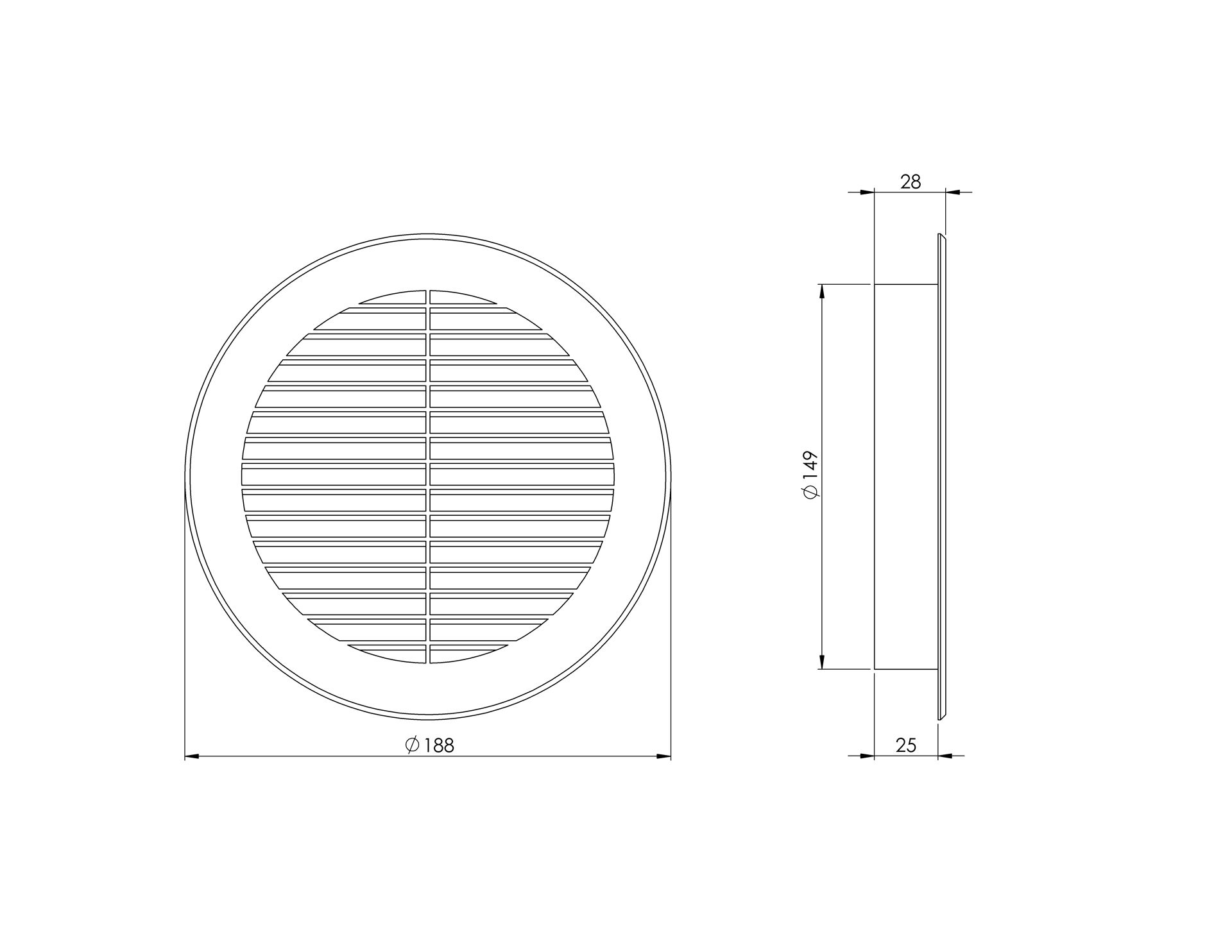 GRILLE VENTILATION VR150M D150MM MUST PLAST.