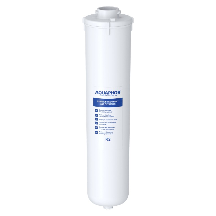 Pöördosmoosi ja valamualuste veefiltrite vahetatav filter K2. • Sobib Crystal ja DWM seeria veefiltritele • Optimaalne kombinatsioon granuleeritud ja kiulistest sorbentidest, mis eemaldavad tõhusalt aktiivkloori ja raskmetallide ioone ning orgaanilisi ühendeid • Valmistatud süsinikplokitehnoloogia alusel • Kujutab endast filtrimaatriksit, mis koosneb kookospähklikoore granuleeritud aktiivsütt sisaldavast ja neeldumisomadusi parandavast ioonivahetuskiust Aqualen™ • Bakteritsiidina sisaldab filterelement klastermikrokristalset hõbedat • Filter vahetatakse koos korpusega, mistõttu pakub see tõhusamat kaitset bakterite vastu