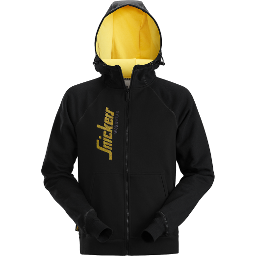 Kollase sisuga kapuuts ja Snickers Workweari logo rinnal tõmbab pilke.