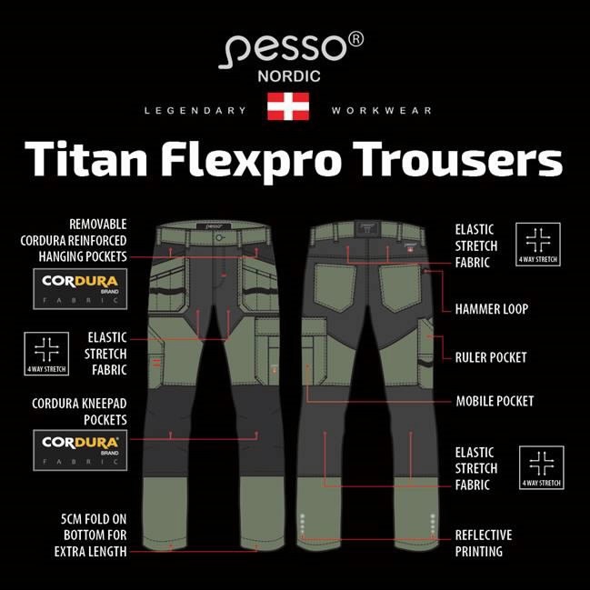 DESCRIPTION WORK PANTS TITAN FLEXPRO FRONT POCKETS GREEN 50 price 80.43€ Pesso