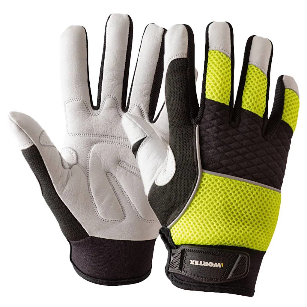WORTEX WG720 nahk-riie töökindad. Hea vastupidavuse ja haarduvusega kinnaste peopesades on kasutatud kvaliteetset kitse pealisnahka ning EVA pehmendusi põrutuste leevendamiseks. Kinda seljaosa on venivast Spandexist ja hingavast võrkmaterjalist. Eraldi kaitse sõrmenukkidele ning randmeosa takjakinnitusega. Kindad on sobilikud montaaži- ja muudel rasketel töödel, kus on oluline kinda vastupidavus ja tundlikkus.