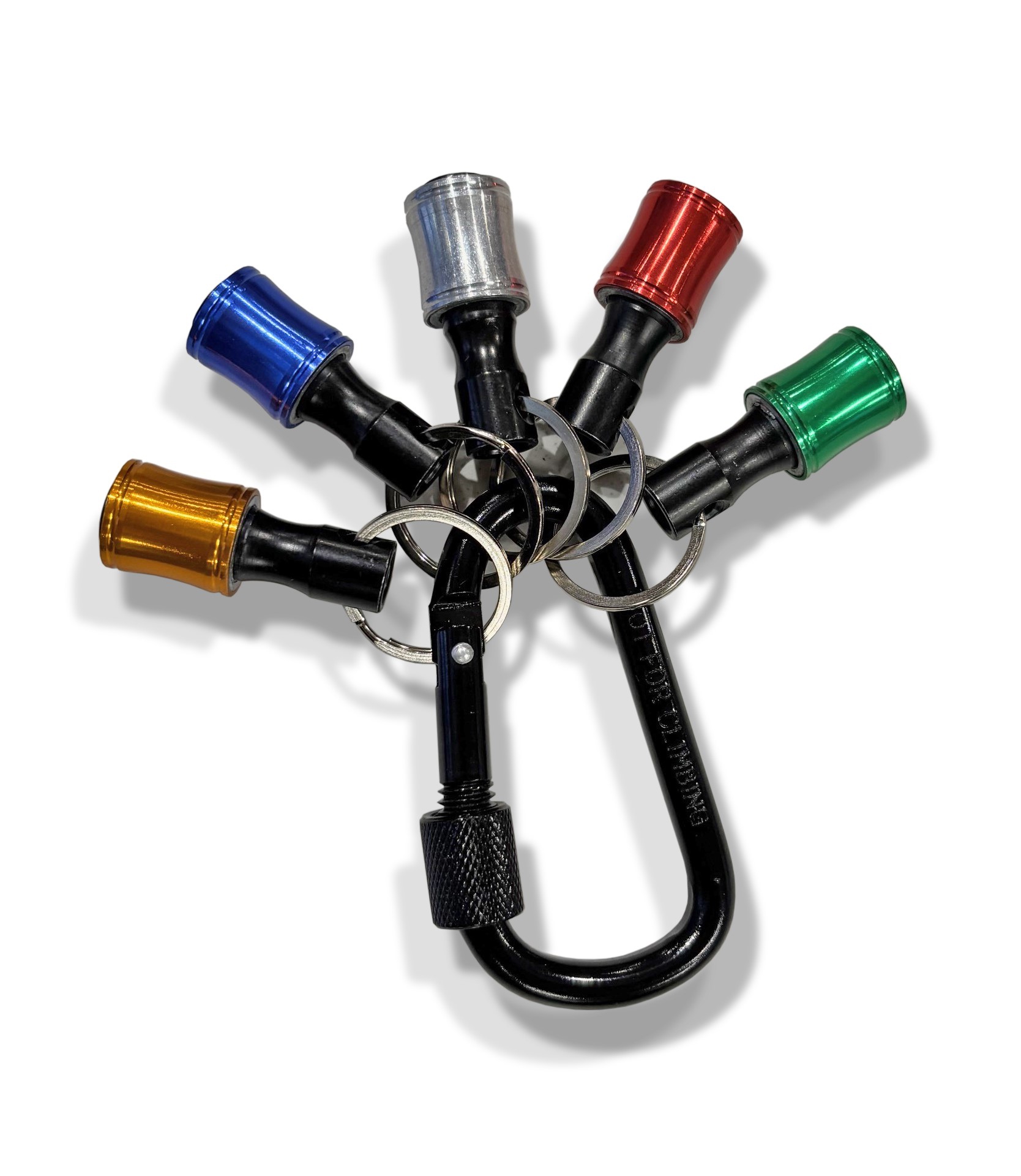 Mugav komplekt karabiini ja 5 otsaku hoidjaga. Hoidke kruvikeeraja otsikud korras ja alati käeulatuses.