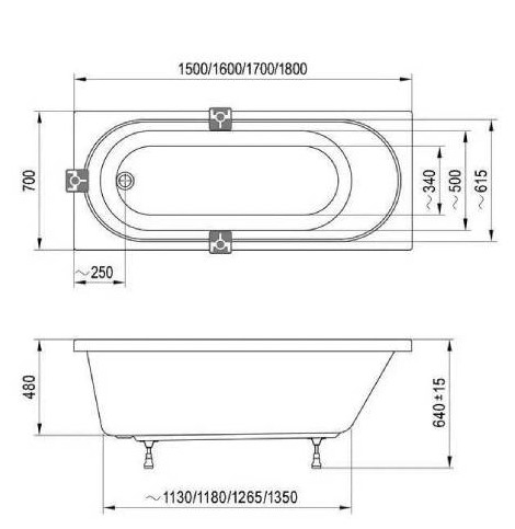 CY00000000 Tugi 70 U on mõeldud vanni tasapinnaliseks paigaldamiseks, mida on lihtne alusega ühendada ja viimistleda.