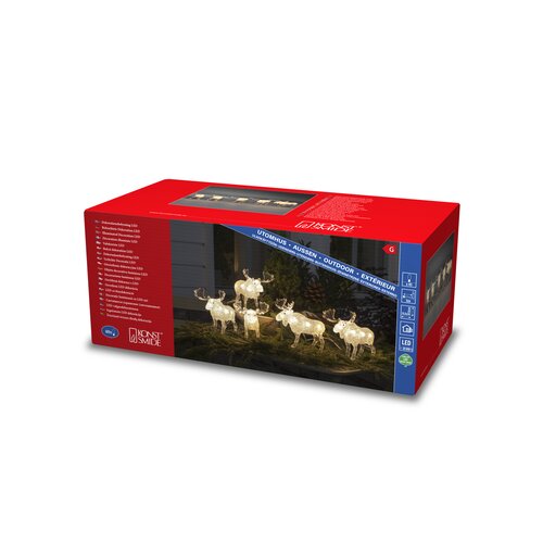 5 põtra, akrüülist valguskaunistus, voolukaabel 500 cm, 5x8 sooja valget LEDi, välis- ja sisetingimustes kasutamiseks, IP44
