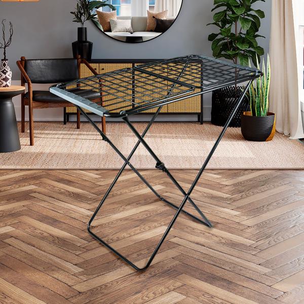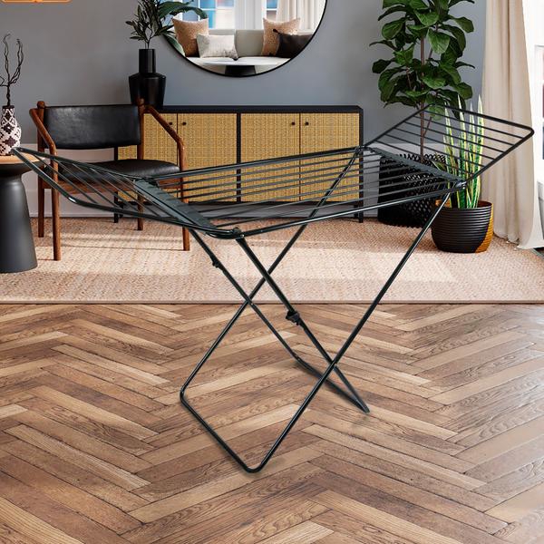 Elegantne pesukuivatusrest, mis on kaetud musta värviga