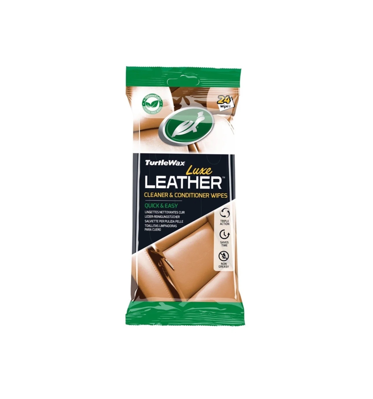 TurtleWax niisked nahapuhastuslapid on mugav lahendus auto salongi nahapindade puhastamiseks ja hooldamiseks. Selles pakendis on 24 niisket lappi, mis on immutatud spetsiaalse puhastusvahendi ja hooldusaine seguga, mis aitab eemaldada mustust, tolmu ja plekke nahapindadelt.