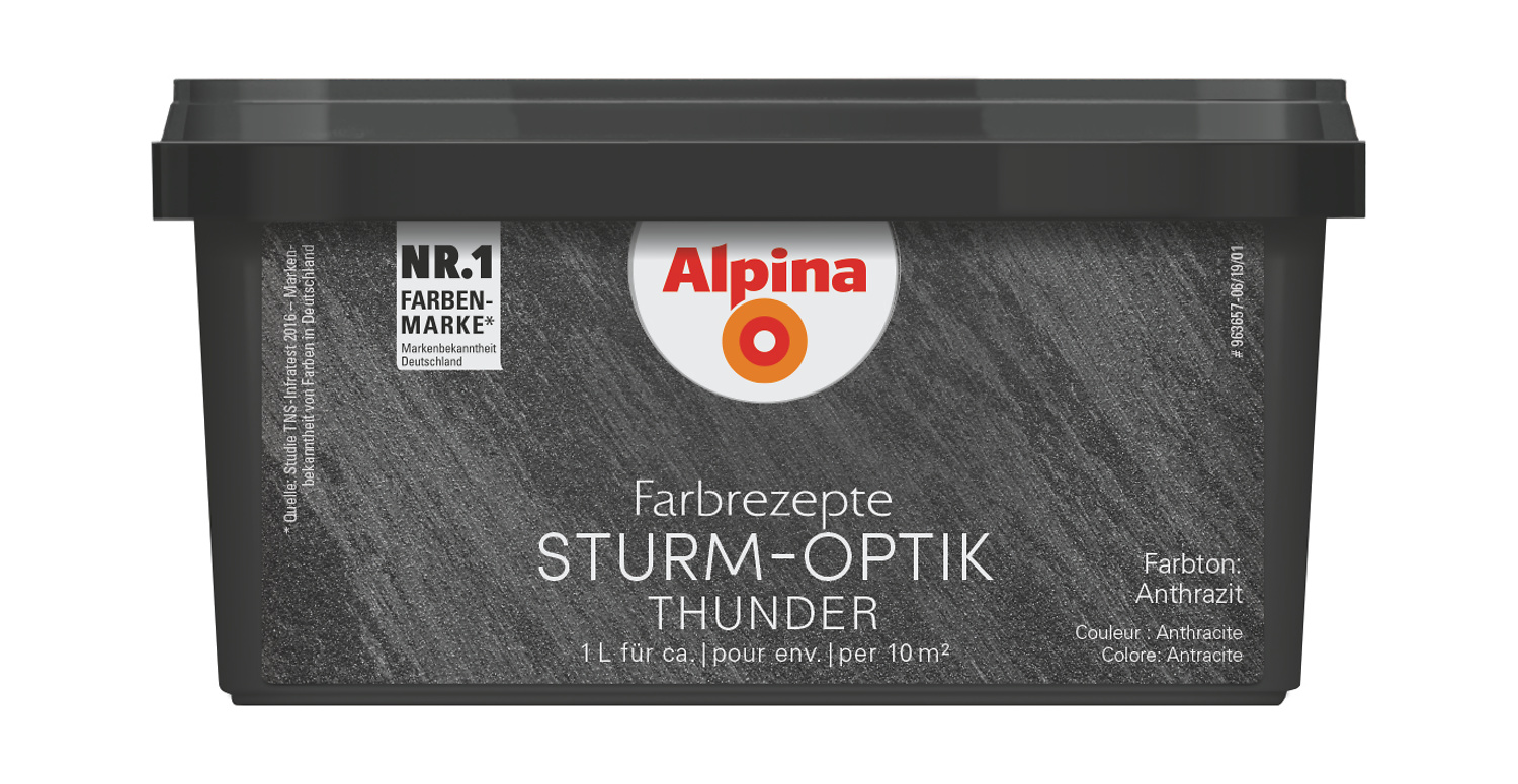 Alpina Farbrezepte STURM-OPTIK on kvartsliiva sisaldav efektvärv sisetöödeks. -Sisetöödeks -Veega lahjendatav, vähese lõhnaga - Puhastatav vee ja neutraalsete puhastusvahenditega Alpina Farbrezepte STURM-OPTIK kantakse pinnale ühes tööetapis. 1. Kanna värv pinnale Alpina harjaga. 2. Töötle vastavat soovile kas diagonaalselt, risttõmmetega, horisontaalselt või vertikaalselt. 3. Ainulaadse tulemuse annab värvi sisse segatud kvartsliiv. Nõuanne: mitte kanda pinnale liiga palju värvi. Õhema kihi puhul on kvartsliiva lihtsam ühtlaselt laiali jaotada. Aluspind: