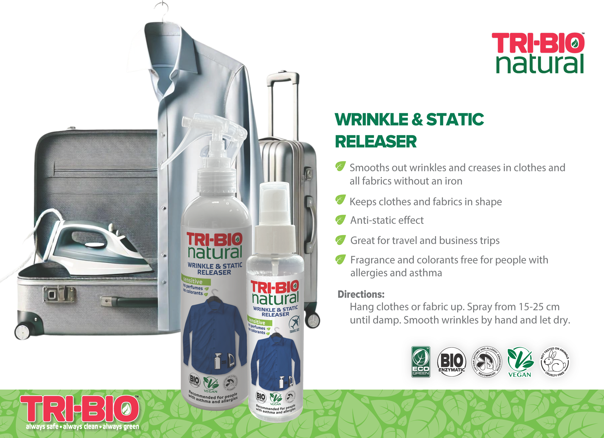 Antistaatiline toime, aitab hoida rõivad siledad ja kleepumisvabad