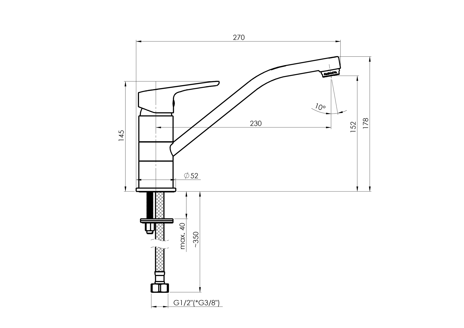 Kraani komplekti kuuluvad 40cm ühendusvoolikud.