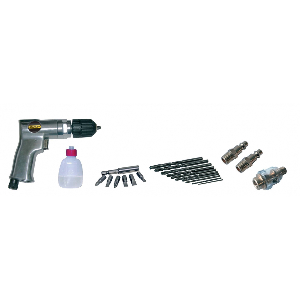 Komplektis on kaasas iselukustuv padruniga pneumaatiline puur. Komplekt sisaldab: õlitaja, õli, universaalsed HSS-puuriotsikud 10 tk (1.5-2-2.5-3-3.5-4-4.5-5-5.5-6),