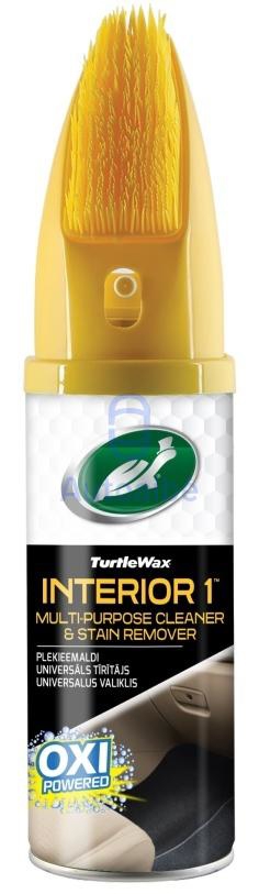 Turtle Wax tekstiilipuhasti Interior 1 Aero 400 ml. Mitmeotstarbeline vahend erinevatest materjalidest vaipkatete ja polstrite puhastamiseks. Komplektis hari sissesööbinud mustuse eemaldamiseks. Kiirelt kuivav vaht ei jäta istmeid tundideks niiskeks. Ainulaadne plekieemaldusvahend eraldab mustuse kangakiududest ja tõstab materjali pinnale. Kasutage nii plekkide eemaldamiseks kui ka sõiduki sisepindade põhjalikuks puhastamiseks.