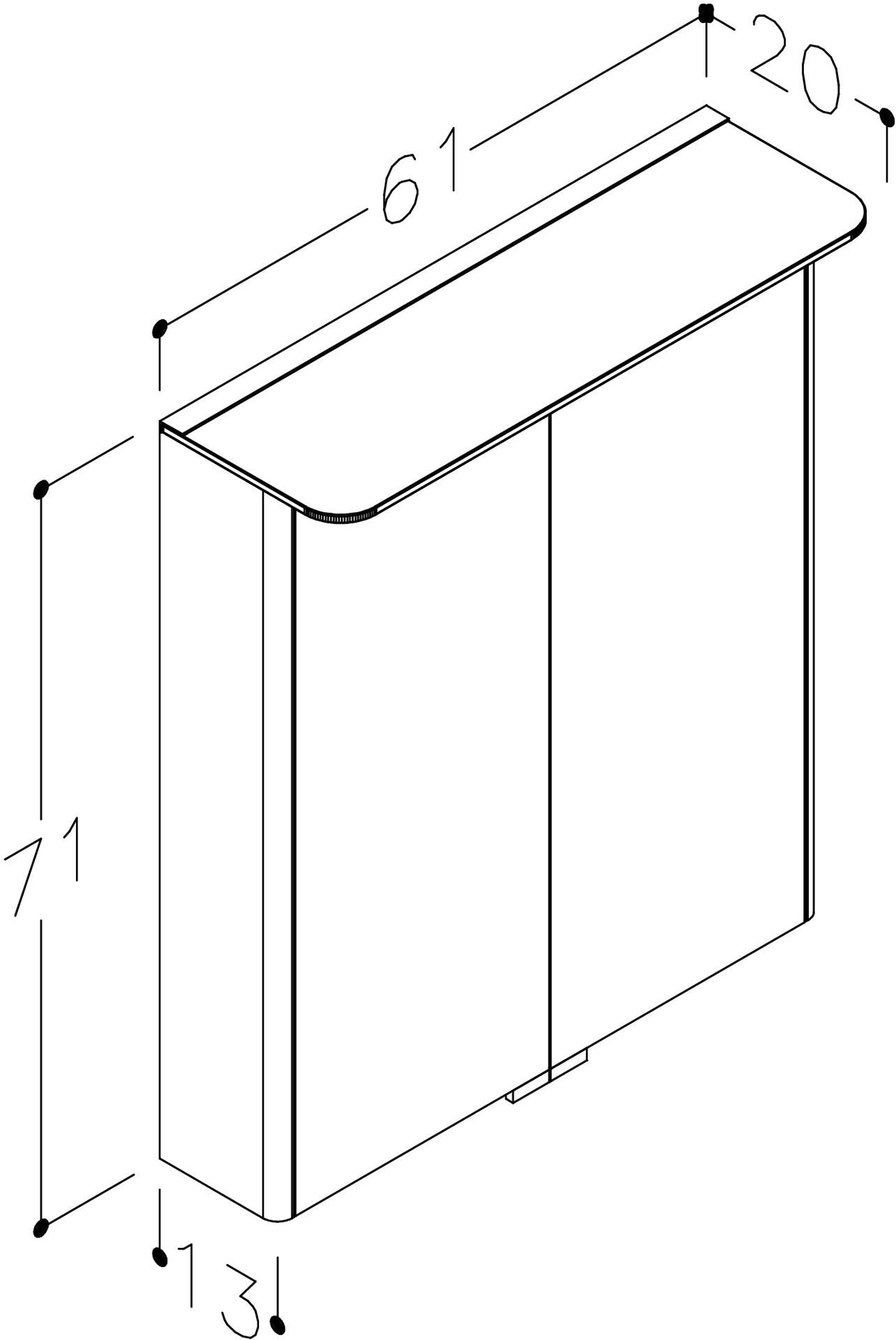 Peegelkapp valgustusega, 2 ust, läikiv valge, 60 cm