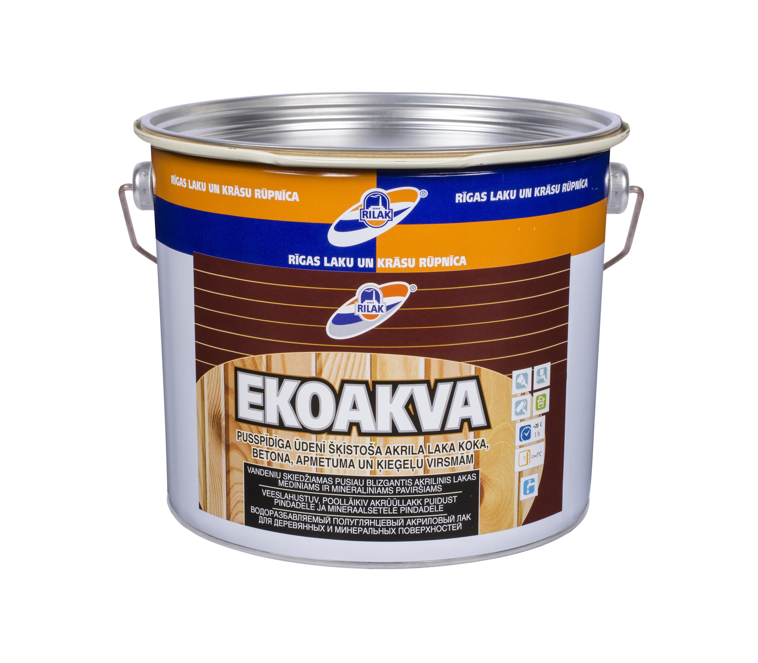 Puit- ja mineraalpindade (betoon, krohv, tellis) lakkimiseks, mis ei puutu kokku intensiivse mehaanilise mõjuga (näiteks põrand) ja paiknevad siseruumides. Toonitakse (alus ??) süsteemi RILAKOLOR ja kataloogi COLTEC WOOD kohaselt. EKOAKVA – poolläikiv; EKOAKVA M – poolmatt.