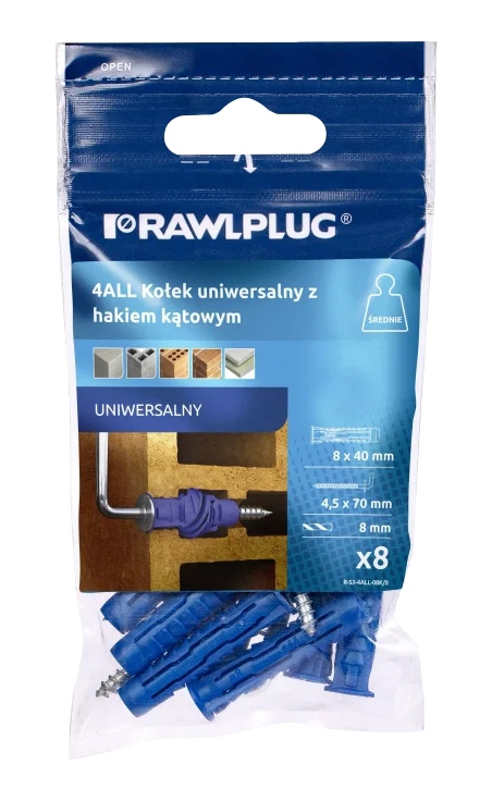 UNIVERSAAL TÜÜBEL 4ALL D8X40MM + L-KRUVI/ 8tk