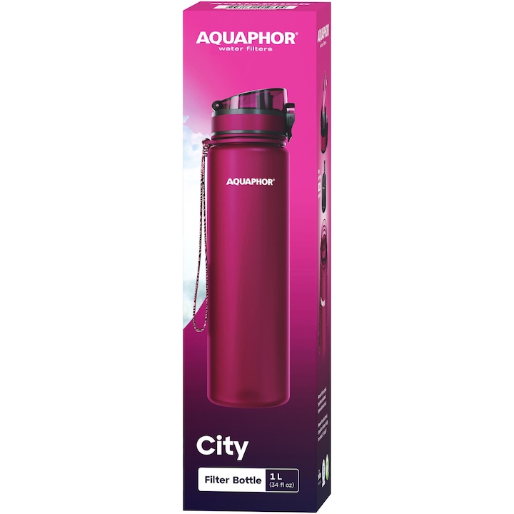 Aquaphor City filtreerivas veepudelis on vahetatav filtrikassett, mis puhastab vett, filtris sisalduv aktiivsöekiud eemaldab veest aktiivkloori ja vähendab mehaaniliste lisandite sisaldust,