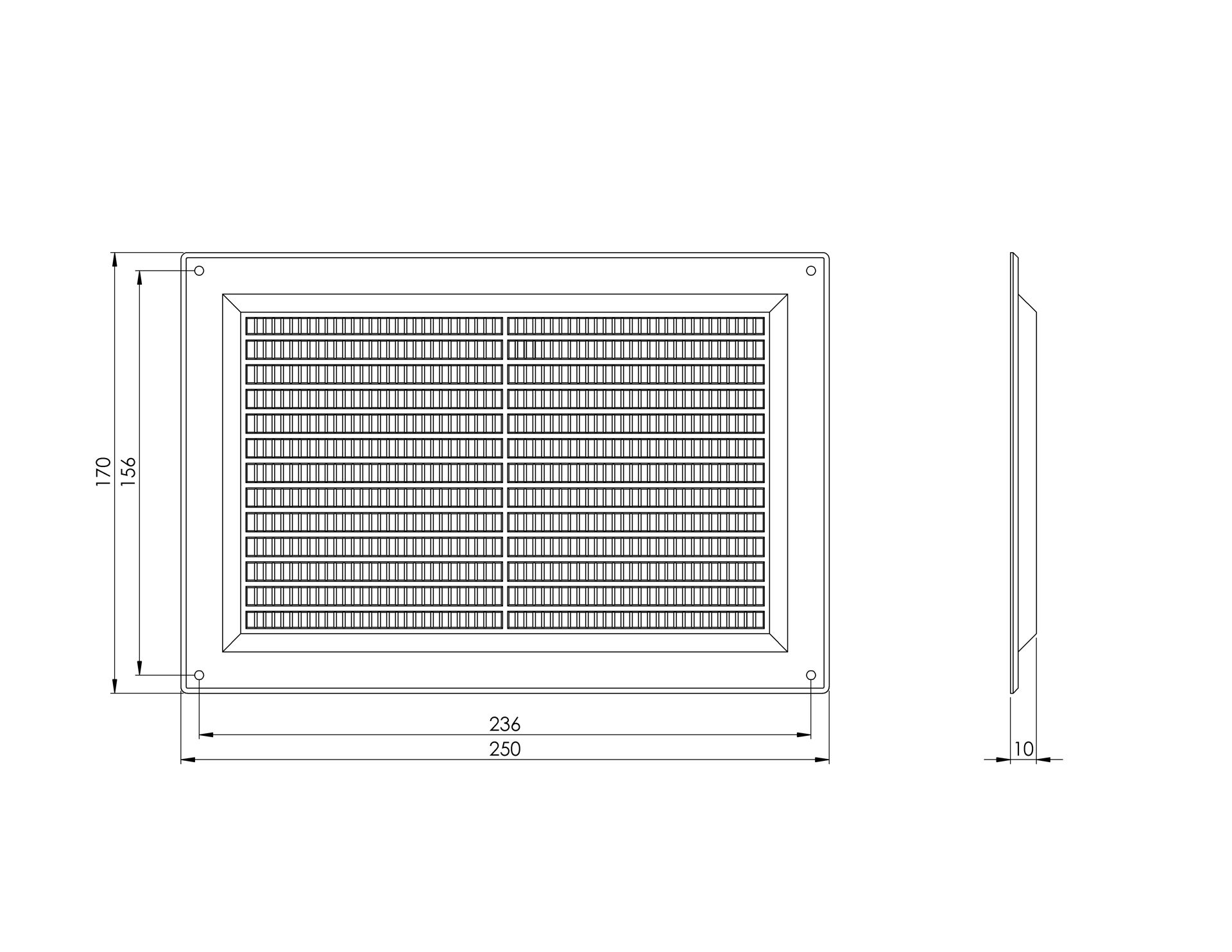 Plastist ventilatsioonirest, 250 x 170 mm, must.